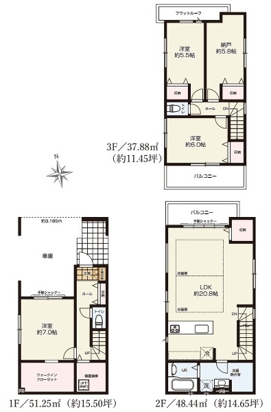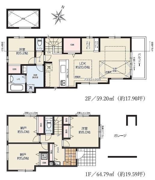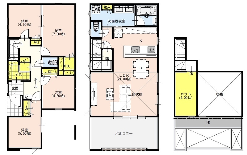- 20.2帖の大空間LDK+ルーフバルコニー。吹抜け設計で開放...