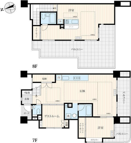 - 専有108.02m2・2LDK+Sのメゾネット住戸。専用駐車場・庭付き。新規リノ...