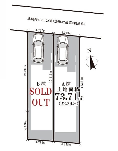 - 北西角地。土地61.65m2。前面4m公道でお車も通りやすい...