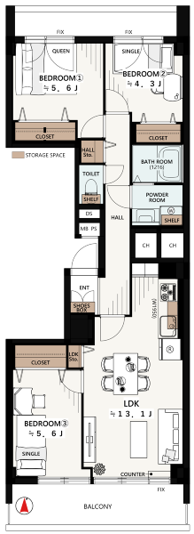 - 19帖の広々LDK+ウッドデッキ付き。全居室5帖以上、収納豊...
