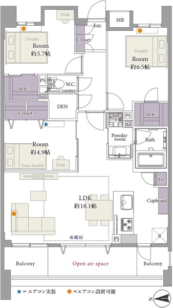 - LDK17.7帖の3LDK。床暖房・食洗機・浴室乾燥機標準装...