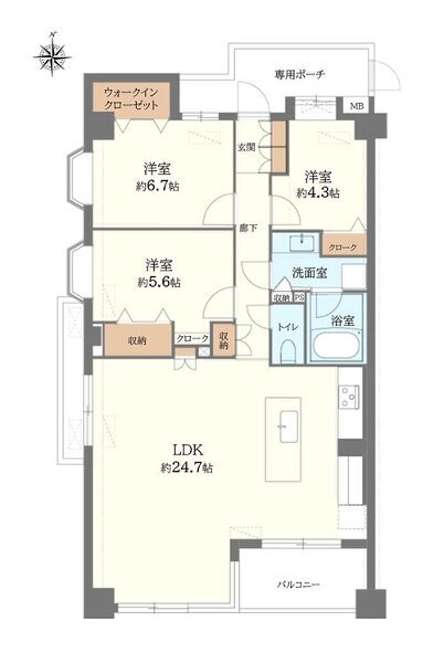 - ◆LDK24.7帖の広々3LDK住戸・専用ポーチ有◆南西角部屋で日当たり通風良好...