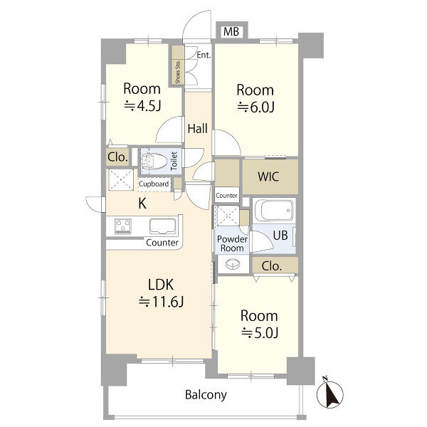 - 「東中野」駅徒歩9分、4沿線利用可。最上階・全室南向き角部屋の3LDK+WIC、...
