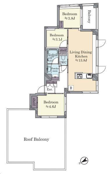- 3面採光のLDK約20.2帖を中心にした、開放感ある4LDK...