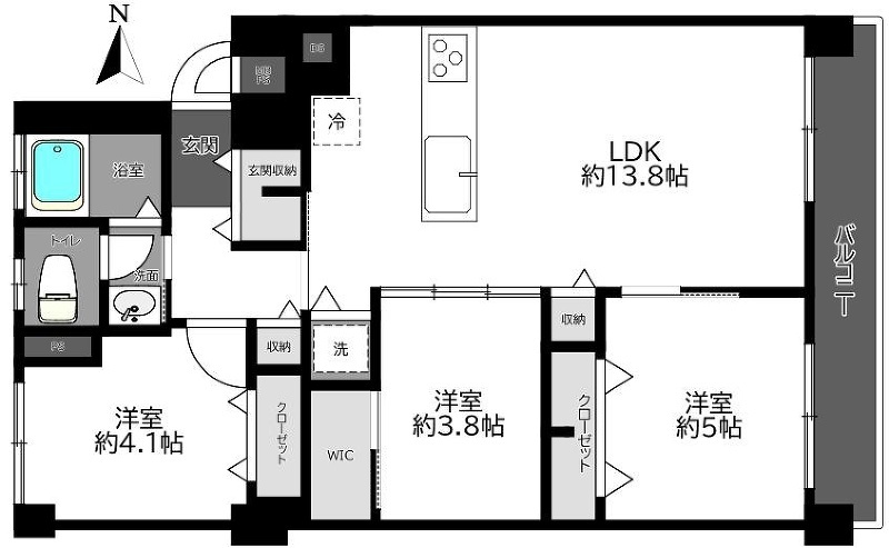 - LDK16.2帖の3LDK+WIC。東西バルコニーで通風良好。新規内装リフォーム...