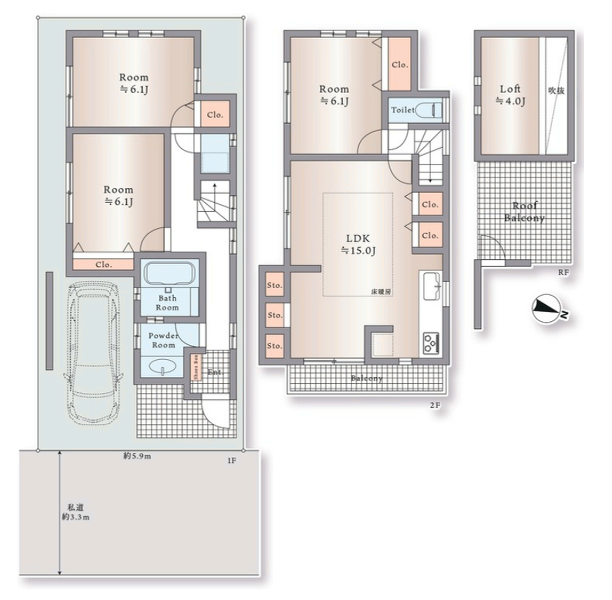 - 全居室6帖超、屋上バルコニー付きのゆとりある3LDK!ロフトなど収納スペース豊富...