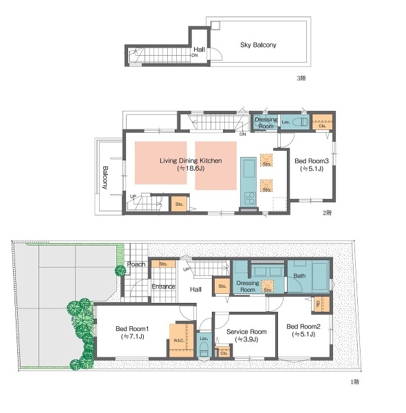 - 延床105.79m2の3LDK。WIC+SICの収納設計。衣類やベビーカーなども...