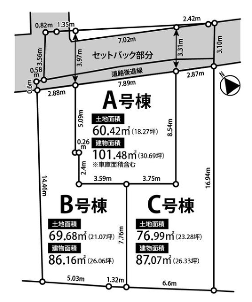 - LDK16.7帖の3LDK新築戸建。北側約7.2m公道に面し...