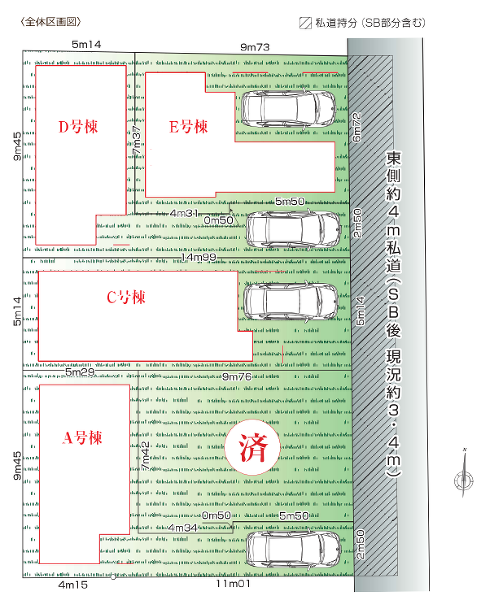 | 私道面積 | 実測 47.62m² 持分:1/5 | セットバック面積 | なし |
