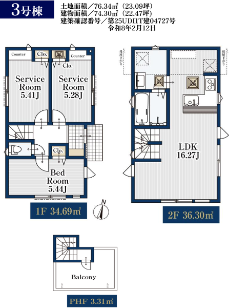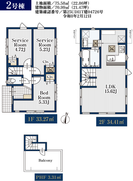 建物面積 | 70.99m²~74.3m² |