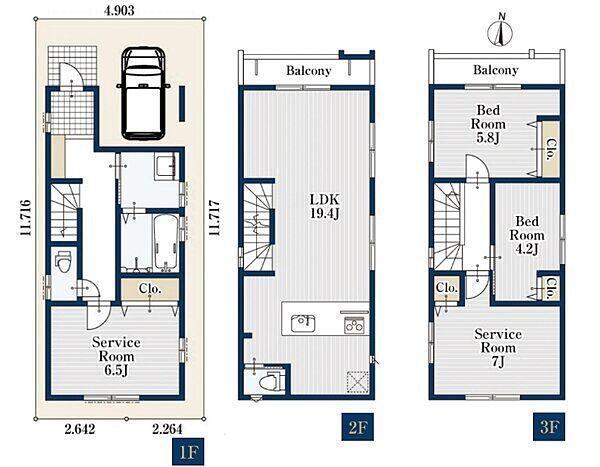 納戸2室含 地勢:平坦 国土法届出:不要 駐車場 車庫:車庫6.83m² |