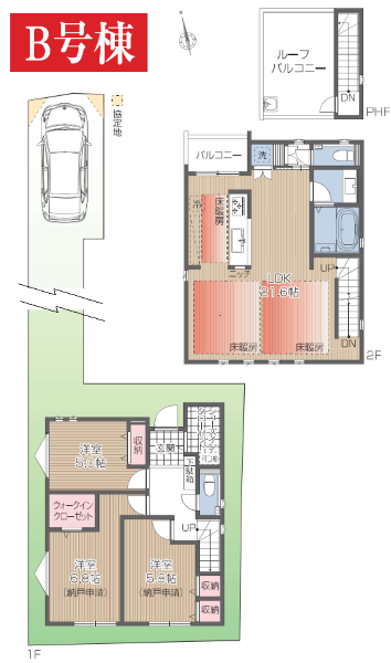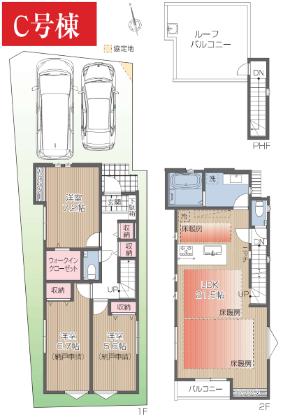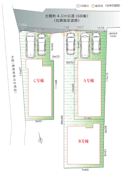 別途SB部分有(SB号棟は2.05㎡×1/2・C号棟は4.34㎡) 国土法届出:不要 駐車場 車庫:カースペース |