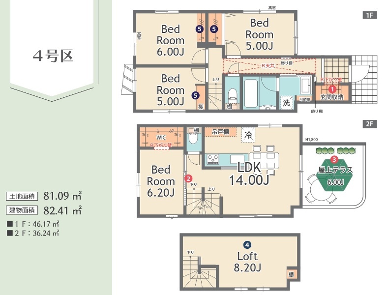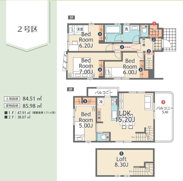 建物面積 | 82.41m²~99.22m² |