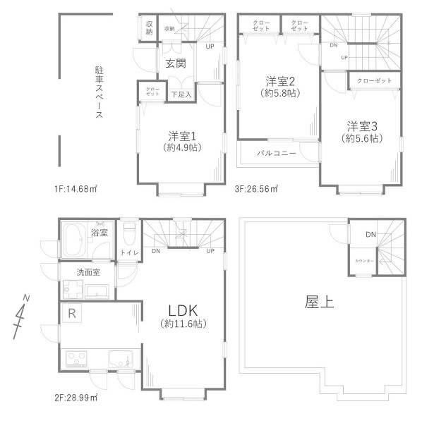 | 間取り | 3LDK | 建物構造 | 木造3階建て |