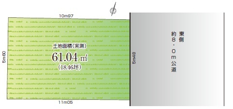 | 接道詳細 | 東8m公道に5.4m接道 | ||