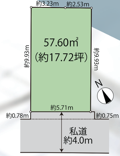 | 接道詳細 | 南4m私道に5.7m接道 | ||