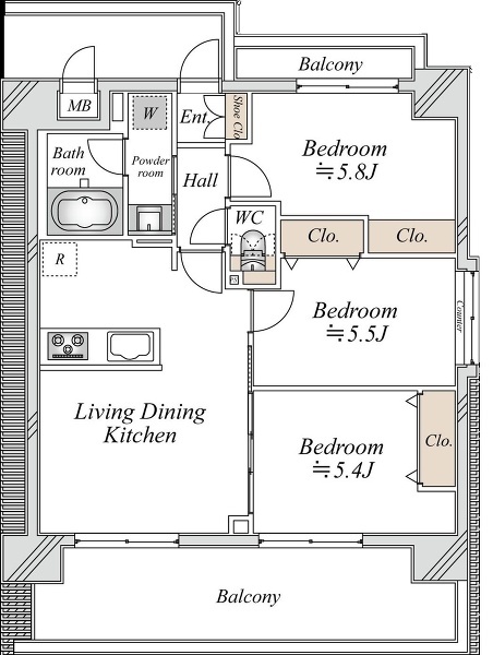 | バルコニー面積 | 13.68m²/東側 | ルーフバルコニー面積 | |