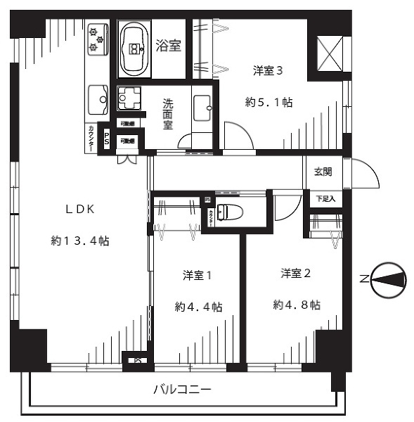 | バルコニー面積 | 11.1m²/西側 | ルーフバルコニー面積 | |