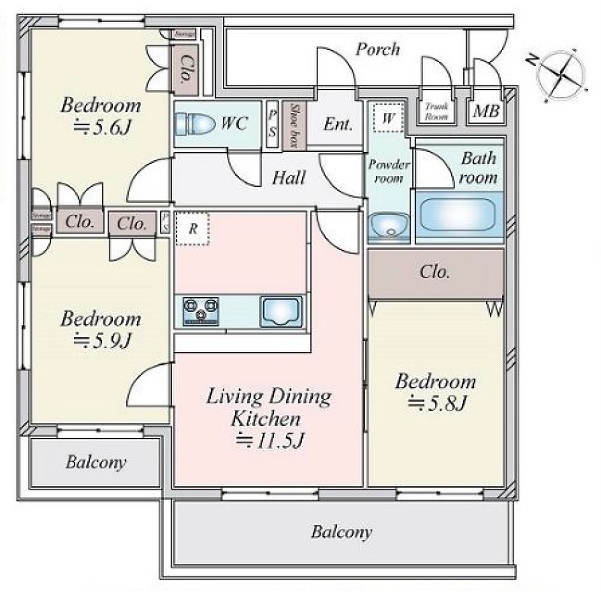 | バルコニー面積 | 11.92m²/西側 | ルーフバルコニー面積 | |