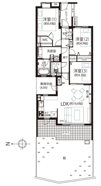 | テラス面積 | 11.82m² (使用料:0円/月) | 専用庭面積 | 29m² (使用料:1450円/月) |