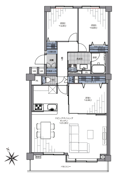 | バルコニー面積 | 7.45m²/南側 | ルーフバルコニー面積 | |