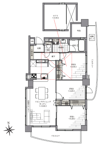 | バルコニー面積 | 18.47m²/南側 | ルーフバルコニー面積 | |