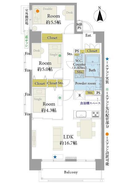 | バルコニー面積 | 8.48m²/南側 | ルーフバルコニー面積 | |