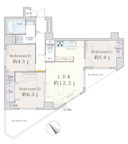 | バルコニー面積 | ルーフバルコニー面積 | 10.44m² (使用料:0円/月) | |